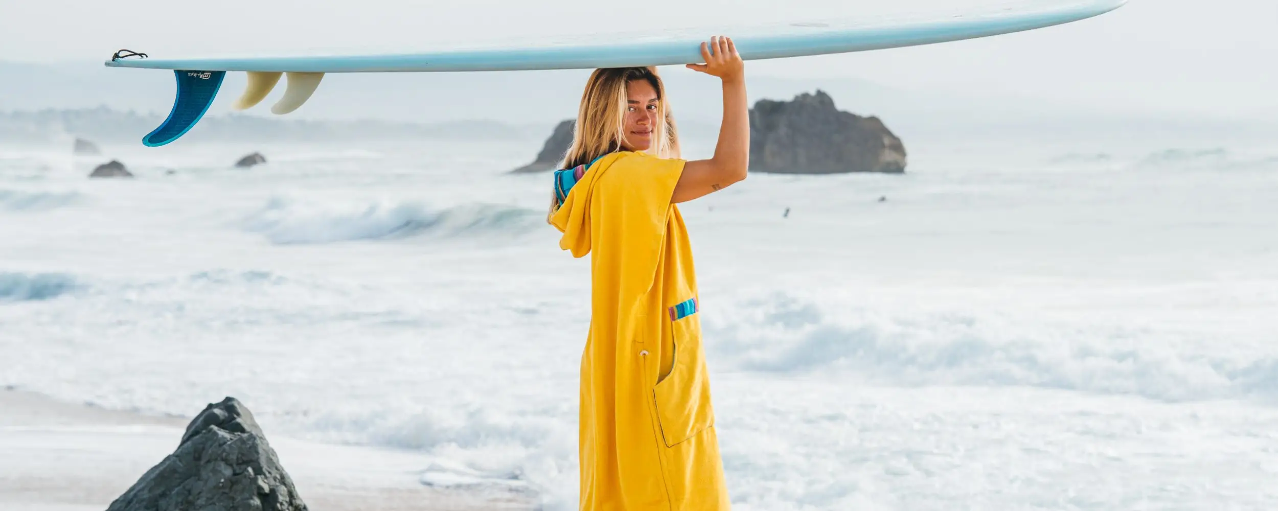 Cu un croi larg, relaxat, ce permite aerului să circule, ponchoul de plajă e confecționat din materiale de cea mai bună calitate – bumbac sau bambus organic – și e ideal pentru a te usca rapid imediat după ce ai ieșit din apă. Gluga dublă, cu material ultra-absorbant pe ambele fețe, te-ajută să-ți usuci imediat părul, iar buzunarele laterale sau de tip marsupiu îți sunt super-folositoare când vrei să ai ceva la îndemână pe plajă, la piscină sau în camping.