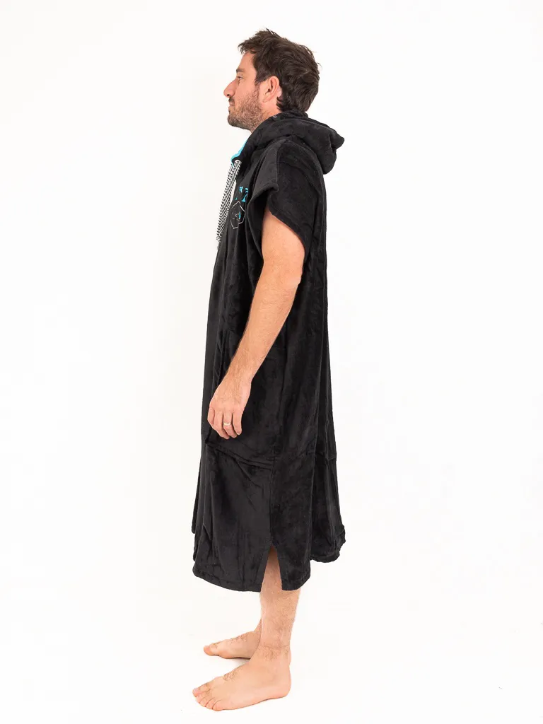 Fabricat din bumbac 100%, Classic Flash Poncho Black/Turquoise are un designul simplu, cu un croi drept și mâneci foarte scurte, aspect care îi oferă avantaje semnificative în ceea ce privește confortul și funcționalitatea. Această croială unică permite o mobilitate sporită a brațelor atunci când vrei să-ți schimbi costumul de baie sau cel de surf după o sesiune în apă.