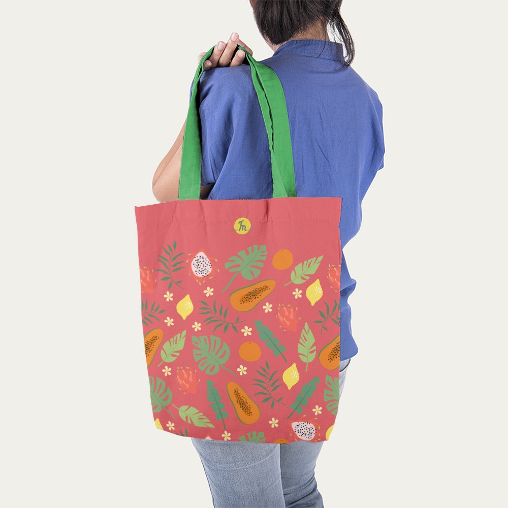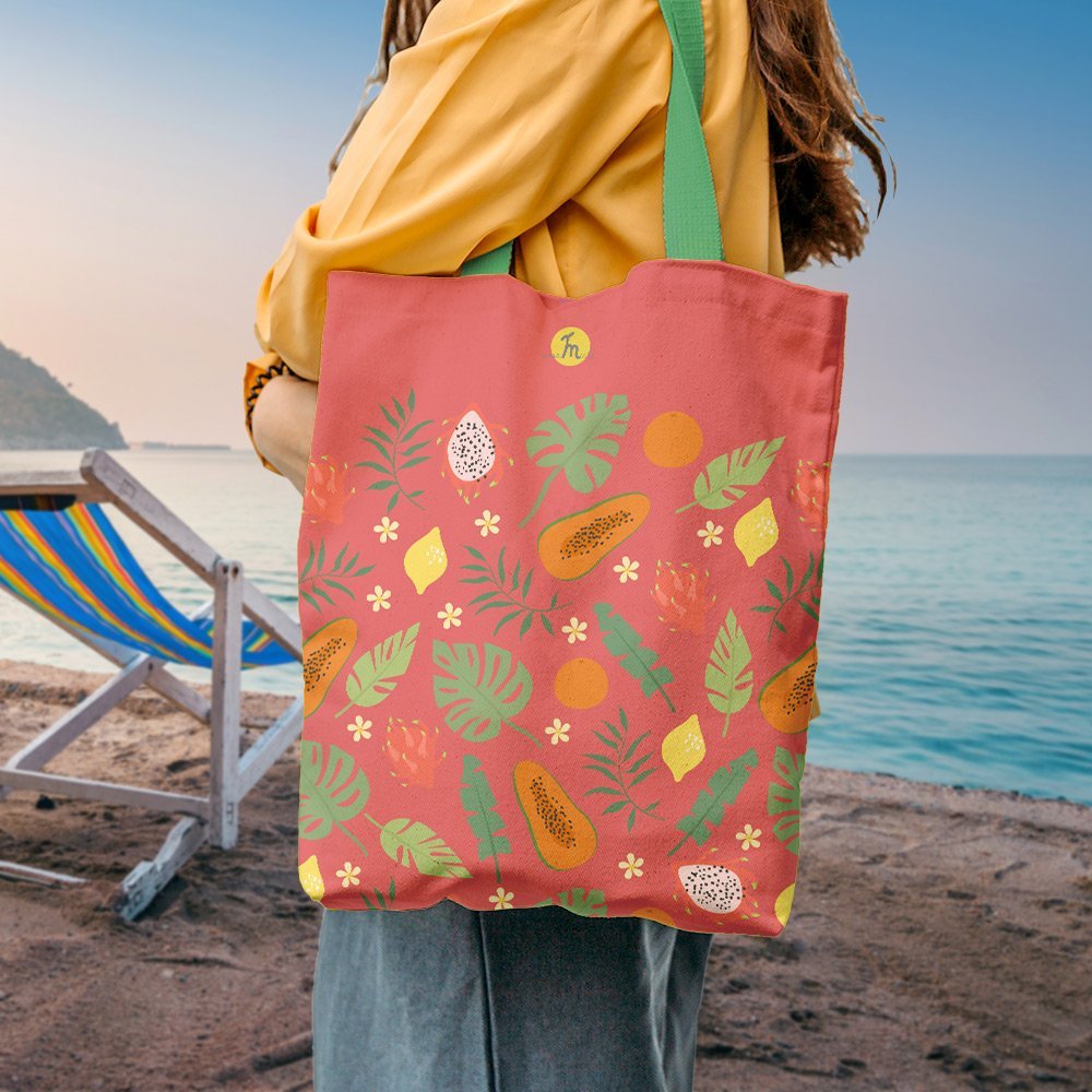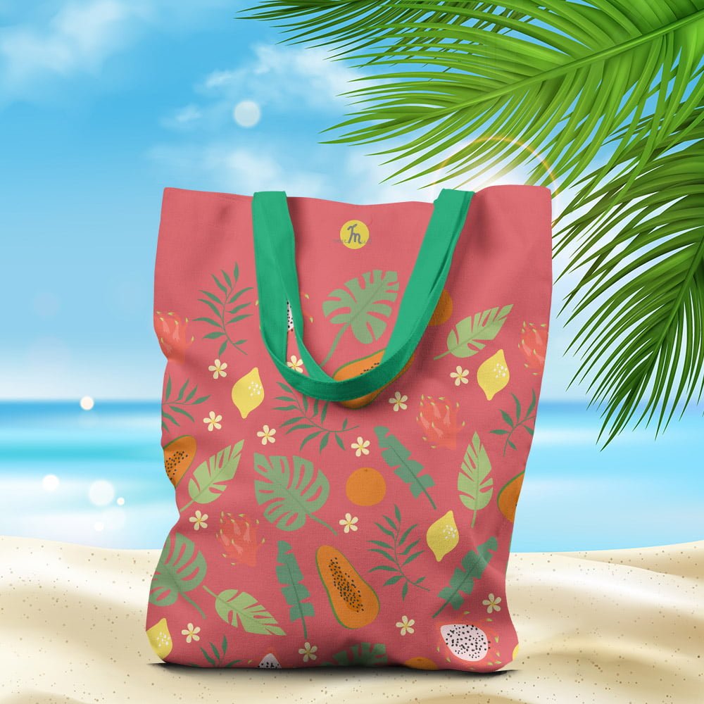 Geantă de plajă căptușită MuleWear – Mango, Lămâi și Fructul Pasiunii