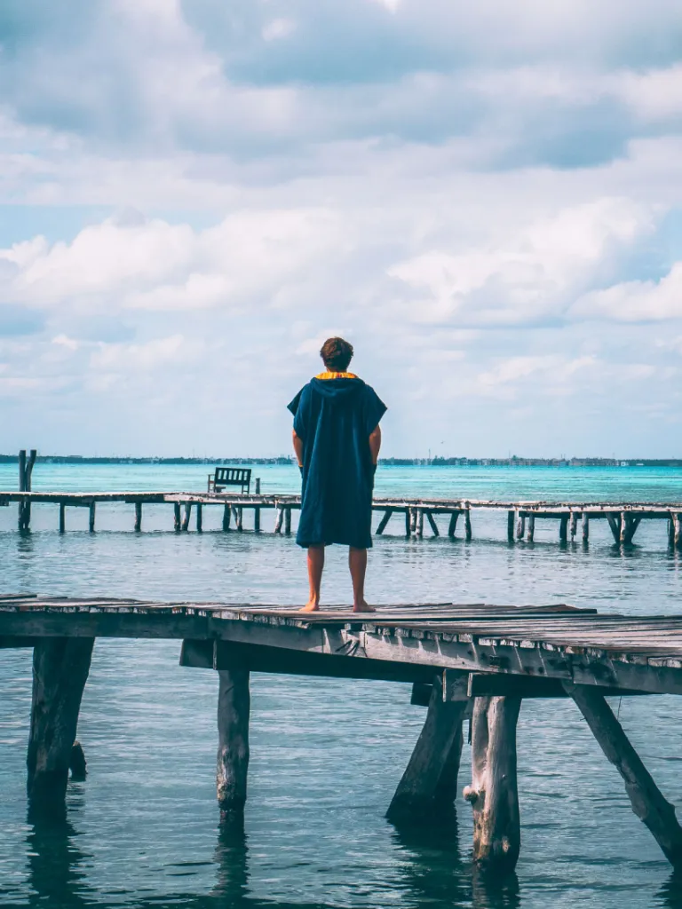Poncho-ul este ideal după o sesiune de surf și îți oferă un adăpost esențial împotriva vântului în timp ce te schimbi de costumul de neopren. De fapt, Pakal înseamnă „refugiu” în limba mayașă!
