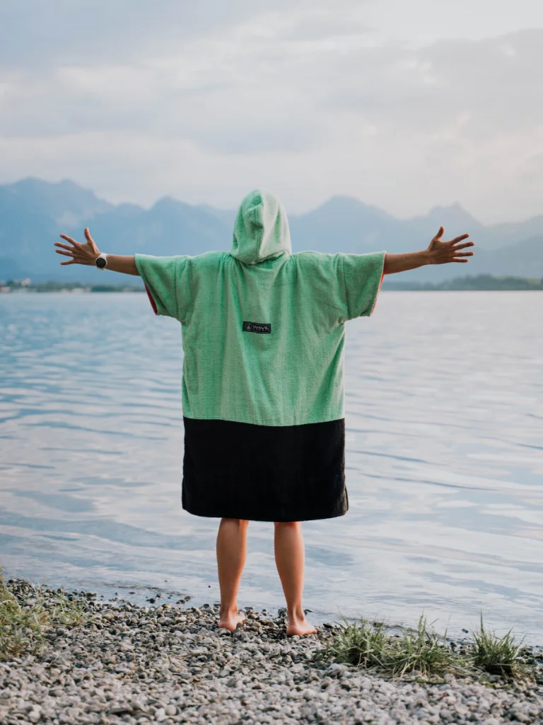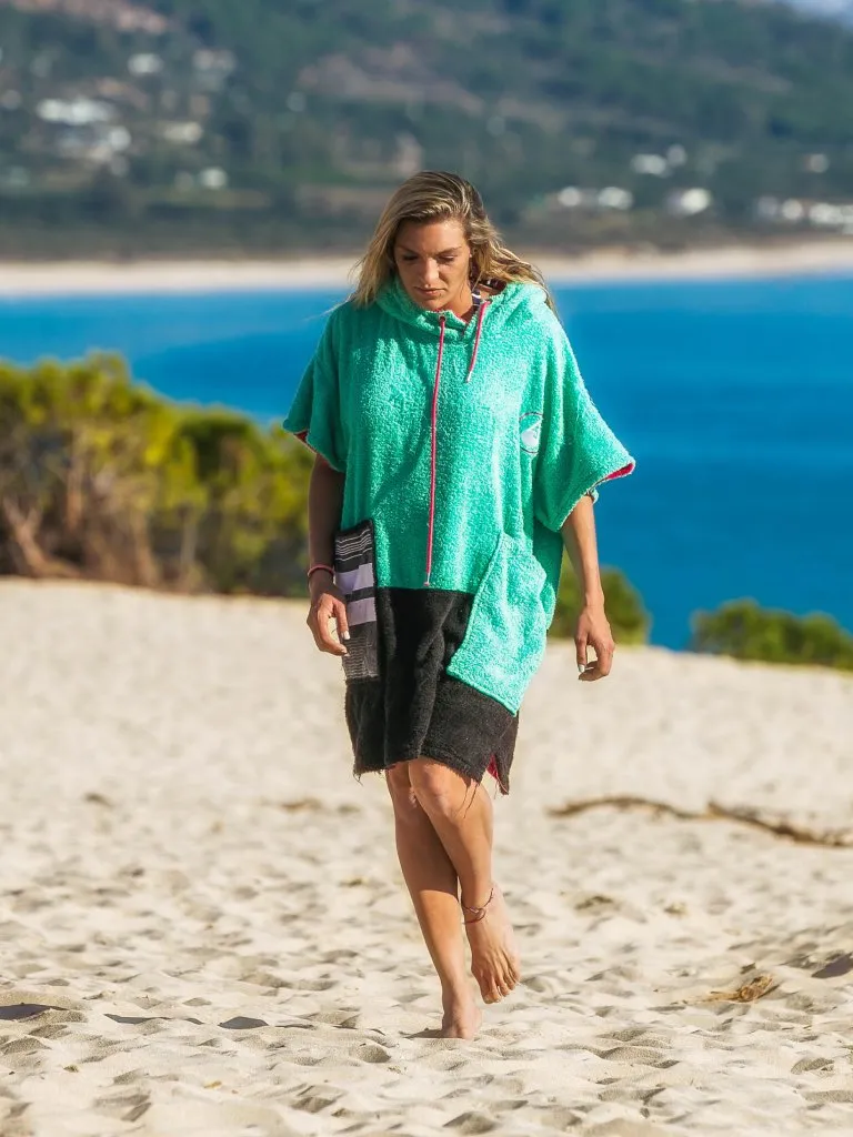 Poncho plaja dama colorat, pentru plaja, scuba sau surfing, culoare verde cu negru